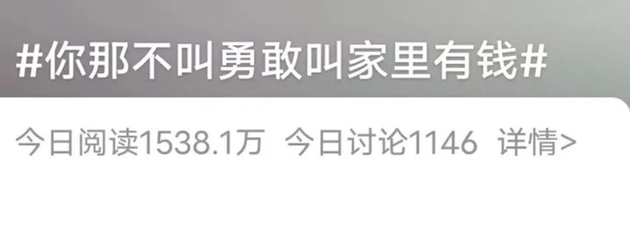 “你那不叫勇敢,叫有钱”登上热搜前列的那刻,大约不少普通人会产生终于有人戳破这假象的感慨。
