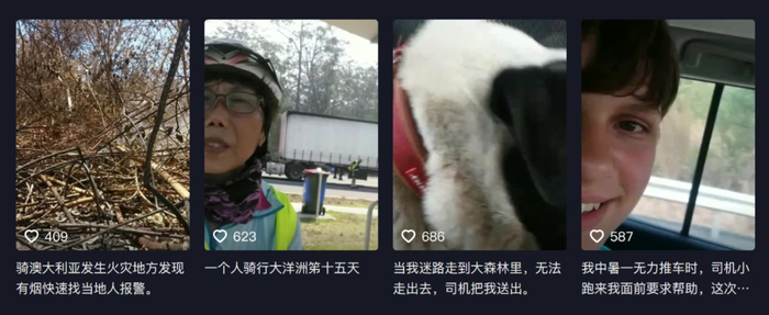 骑行途中在澳大利亚发现刚刚冒头的森林山火,用翻译软件说给当地人听、让对方报警,镇上居民报答她的善意,特地驱车找她送帐篷和装备。