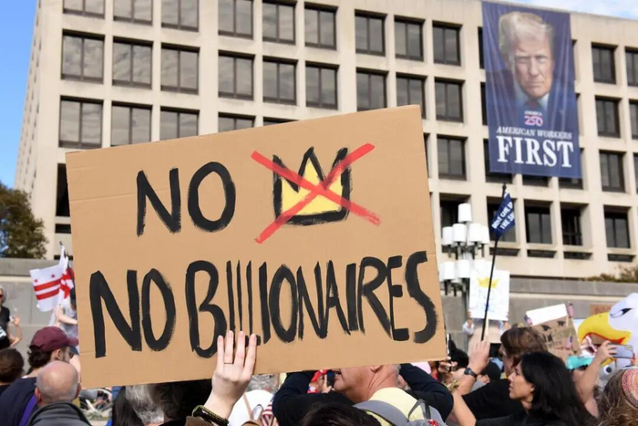 第二件事是,2025年11月中旬,美国有700万人走上街头,反对特朗普的所作所为。队伍中最醒目的一条标语是:“自1776年以来,美国没有国王!”显然是对他独断专行的反抗。抗议者还说,特朗普乱加关税,没有取得议会的批准,也没有得到法院的认可。