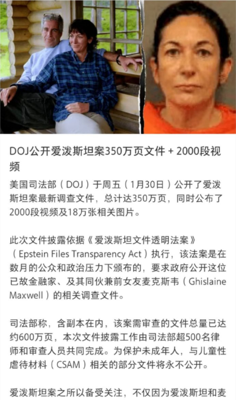 此次美国再次公开令人炸裂的爱泼斯坦案件内幕,也与牢A之前爆料都互相验证了。