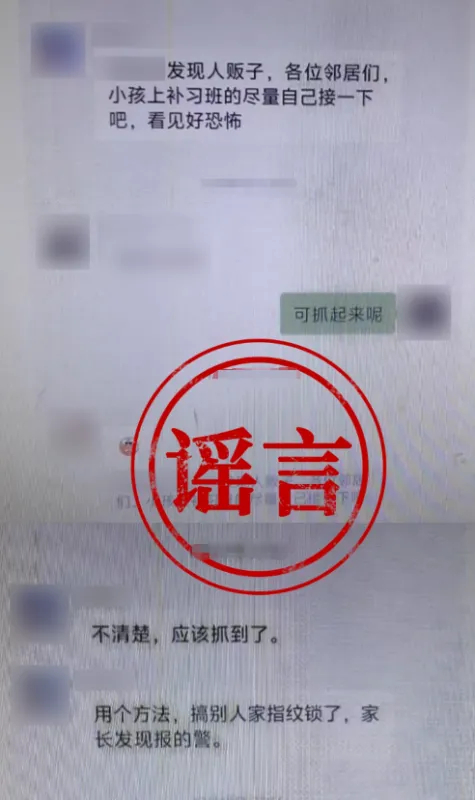 “小区发现人贩子...“的谣言