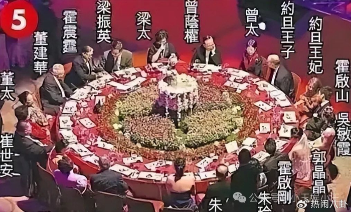 其他人则有约旦的王子王妃,以及三任香港特首,董建华曾荫权梁振英,和他们的太太。