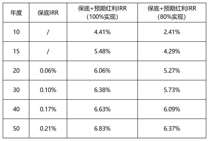 保险合同会给一份收益演示表,这是保司基于历史,觉得自己有把握能做到的。