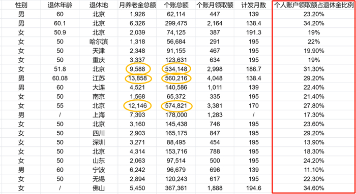 比如第九位大连男士,他60岁退休时,个人账户每月发1011块钱,大锅饭3510元。