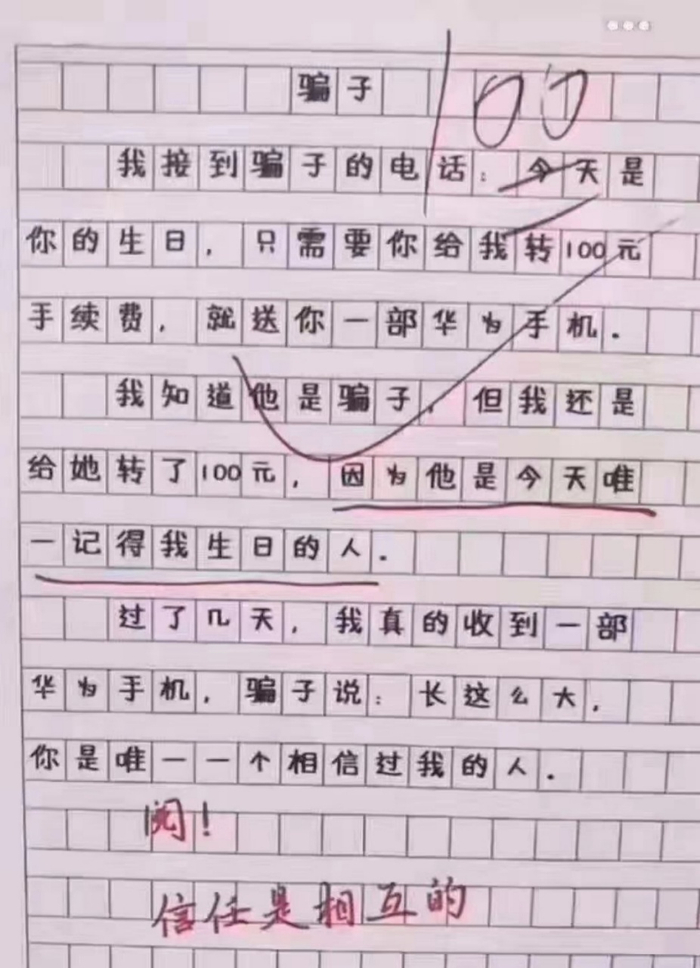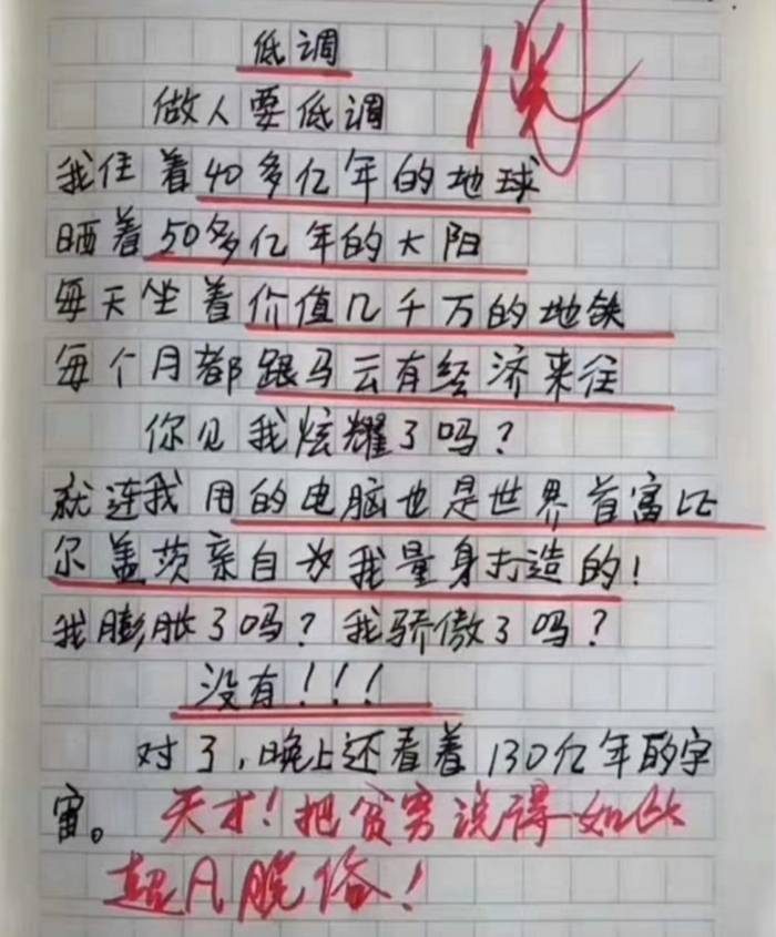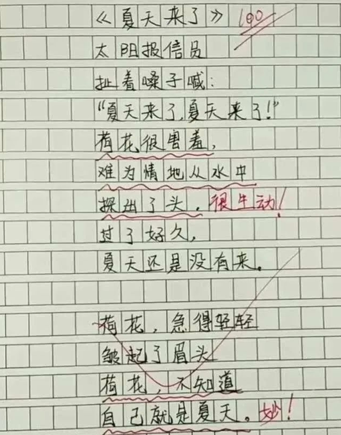 这位小学生的作文完美诠释了这句话的含义。连阅卷老师看完都忍不住感叹:我拜你为师吧!