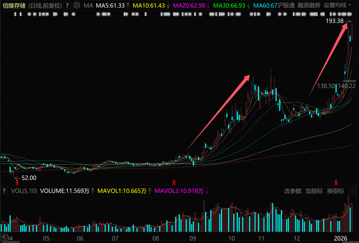 2026年以来,之前股价涨幅相对落后的佰维存储率先发力,开年至今已经暴涨近66%;德明利大涨20%左右,江波龙大涨40%左右,香农芯创上涨14%左右。