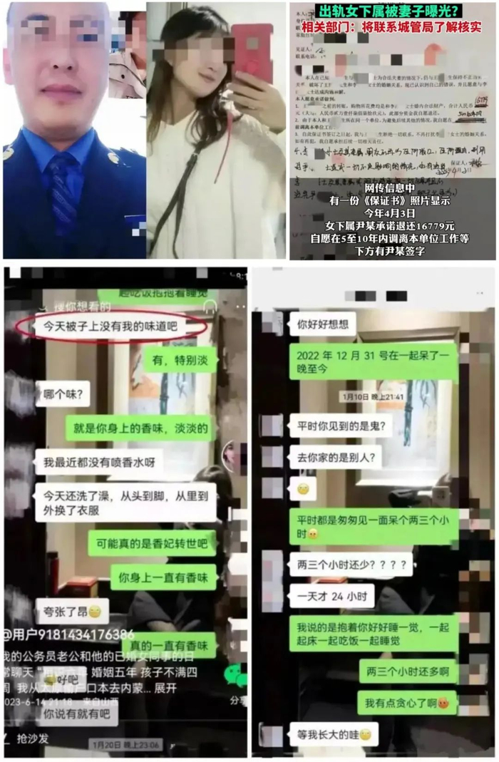 “内蒙古鄂尔多斯市准格尔旗城市管理执法局蓝天执法队的中队长王某,与自己的女下属尹某有着不正当的男女关系,妻子将其曝光,官方通报已停职。”