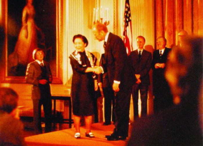 获得美国国家科学奖章吴健雄回国时,曾受周 总 理亲自接见。