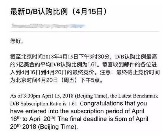 这种如同供应商招标的融资方式,第一次出现在投资界后,就让多位投资人大呼不可思议,但是多家投资机构还是如潮水般涌入,至4月3日首轮竞价结束,超过100家投资机构参与融资竞价,且每家交了10万美元保证金。4月5日,竞标结果出炉,平均D类/B类认购比例为1.29:1,即1万美元的B股对应1.29万美元的D债,认购金额较计划融资额超过了30倍。