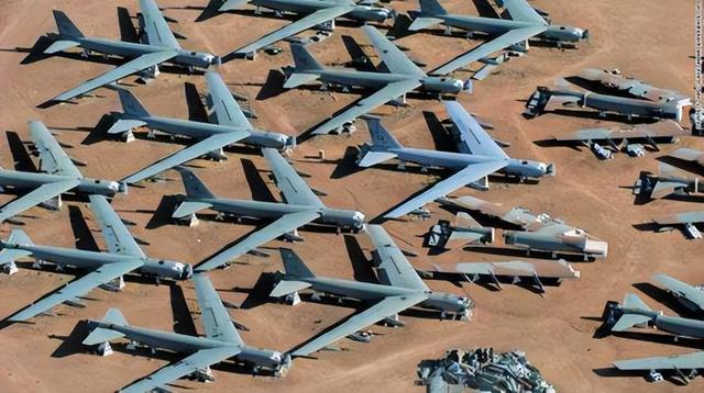 图为戴维斯蒙森空军基地停放的B52首先,B52轰炸机具备极强的作战性能,其翼展约56米,机翼面积可达370平方米,它使用了8台涡扇发动机,可以加油18万升,这就使其在具备极大载荷的同时,不会对动力造成太大影响,公开资料显示,B52轰炸机的飞行速度可达每小时1000公里,续航为1.6万公里,在空中加油一次的情况下,几乎可以绕地球一圈,此外,它最大的特点是可以轻松实现“地毯式轰炸”,B52轰炸机可载弹30吨,并且还配备了机翼挂架,无论是常规炸弹,还是巡航导弹,甚至是核弹,都可以通过B52这一平台进行发射或投掷,正因如此,它并没有被后来的B1B“枪骑兵”和B2“幽灵”两款更先进的战略轰炸机取代。