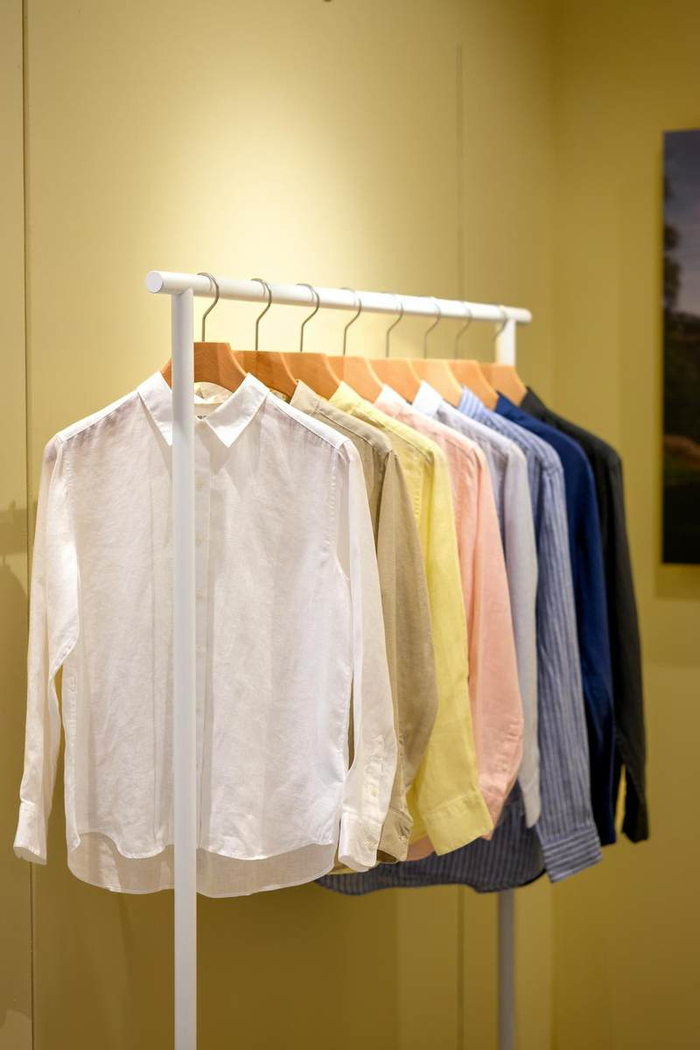 为了呈现优美色泽与光泽,优衣库优质亚麻衬衫的面料制作从将欧洲种植的优质亚麻纺成纱线这一工序开始,在去除了原料中的杂质后,便会对纤维进行精细地梳理。这种梳理过程需反复进行五次,以形成具有光泽感且色泽优美的纱线。在染色过程中,会从120种染料中根据每款衬衫的颜色调配出特别的配色,最终打造出色泽优美、质感上乘且具有光泽感的面料。
