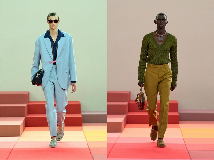 全球范围内,多家奢侈品集团旗下的男装发布机制正在经历结构性变化。在开云集团中,Gucci于2017秋冬季确立男女装合秀(co-ed)模式,“去性别化”的叙事一度成为品牌核心语言,虽在Sabato De Sarno上任后短暂回归男女装分场形式,但到2025年再度转向合并发布。Bottega Veneta自同年起也转为在米兰女装周以co-ed模式发布所有系列,Balenciaga则在2018春夏季开始采用男女装合秀,并在Demna Gvasalia任内形成稳定机制。