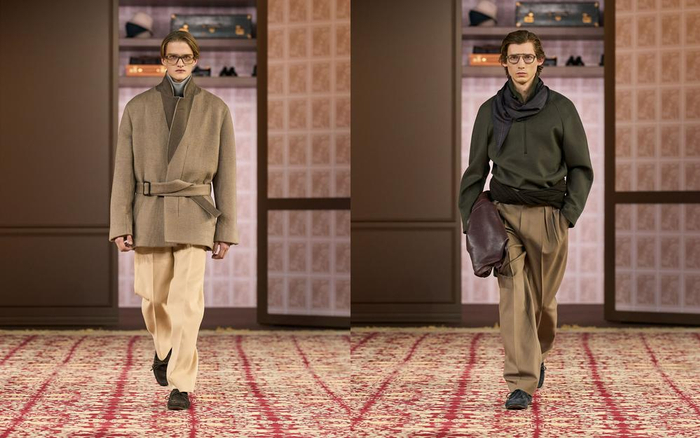 秉承爱马仕一贯的理念,该系列以低调内敛为特色。Véronique Nichanian再次回到品牌最具代表性的设计语言之中:考究的剪裁、丰润而低调的皮革质感,以及层次分明却毫不刻意的搭配方式,勾勒出既当下又经得起时间检验的轮廓。羊毛与羊绒大衣线条剪裁精准利落,皮革长裤以触感取胜,双排扣细条纹造型则在经典剪裁的基础上做出微妙变化,始终保持着不事张扬的优雅。