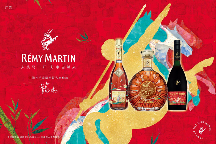 人头马酒庄携手中国艺术家薛松,推出人头马优质香槟区干邑“邑马当先”联名合作款礼盒系列,共贺马年到来。艺术家薛松以人头马标志性的“半人马”形象作为灵感,融合中国生肖文化中“马”奔腾驰骋的美好意象,绘画出寓意深远的联名艺术臻品“邑马当先”,呈现了品牌“脚踏实地,昂首射星”追求卓越的态度。
