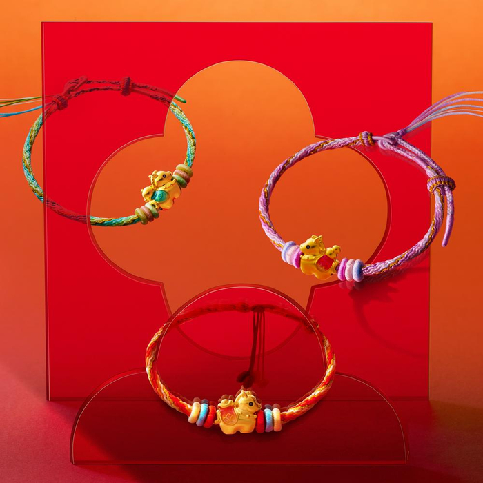 老庙与中国香港国学界著名人士麦玲玲女士联手打造的老庙×麦玲玲“大师系列”推出马年新品,以生肖马为核心设计元素,通过更偏年轻化、日常化的造型语言,延展传统生肖题材在当代金饰中的表达方式。系列以“本命年马上有运”为主题,面向属马人群推出多款黄金手绳产品。整体造型以圆润的小马形象为主体,并在马背融入不同寓意的吉祥元素。