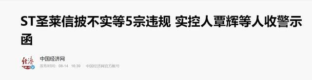 受此消息影响,ST圣莱股价持续下跌,损失惨重。其实早在8月11日,覃辉就被下发了警示函。