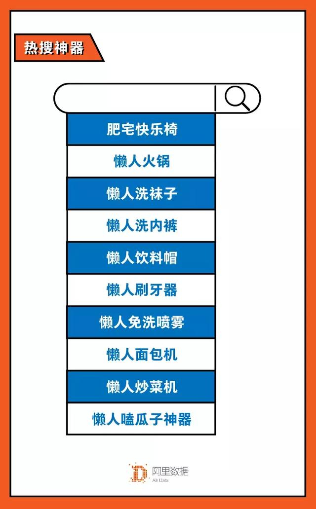在产品方面,淘宝热搜的十大懒人神器让人大开眼界:肥宅快乐椅、懒人饮料帽、懒人刷牙器、懒人免洗喷雾、懒人嗑瓜子神器…… 每一个都让人忍不住打开淘宝搜一下。