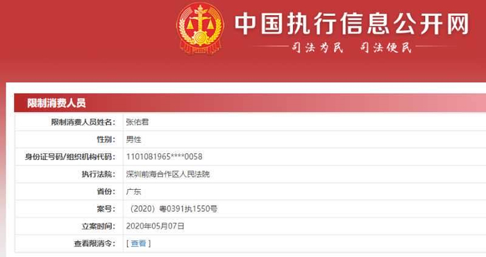 中国执行信息公开网显示,5月13日,中信证券董事长张佑君已被深圳前海合作区人民法院发布限制消费令。