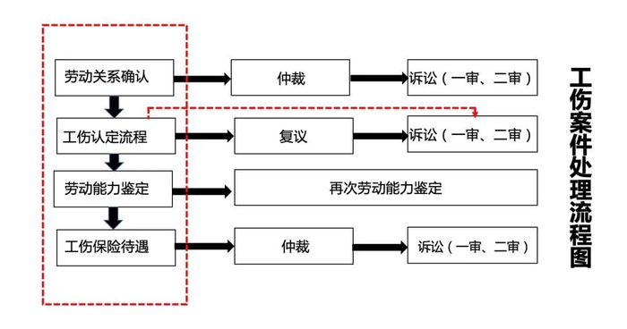 工伤事故发生后,除了对受伤职工进行有效救治外,工伤保险待遇是各方重点关注的。工伤案件的办理,涉及程序较多,处理周期较长,是一个漫长的过程。具体流程可查看下图:
