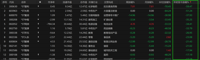 分析*ST摘帽概率之前,先看看*ST板块年初至今的表现。