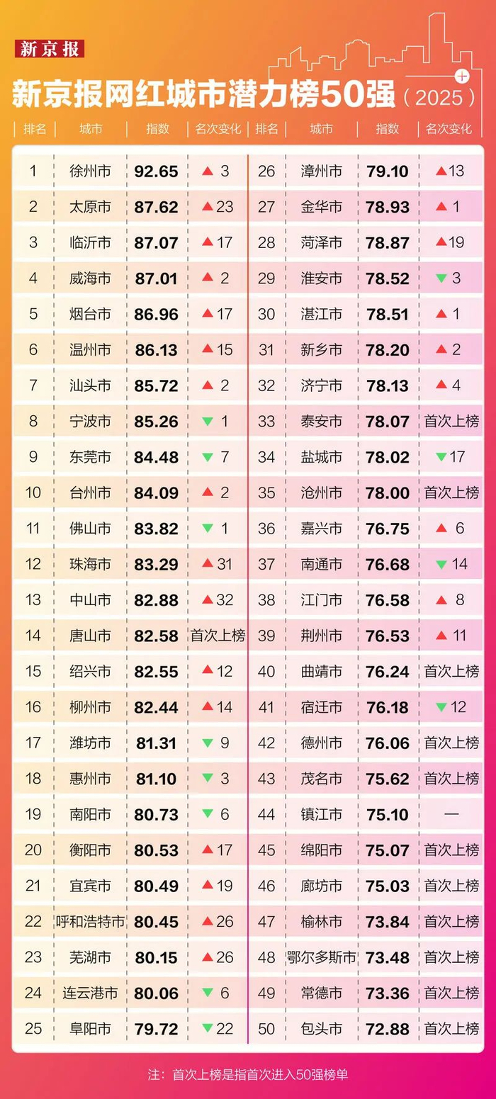 2025新京报网红城市潜力榜50强发布
