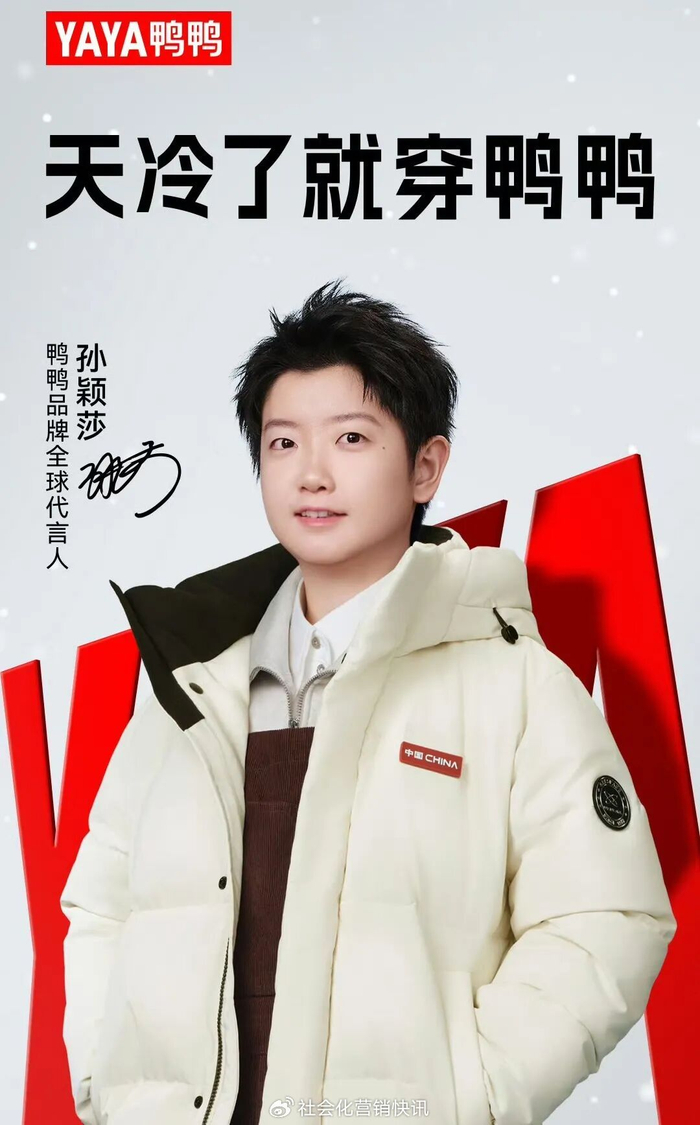 王一博负责诠释运动潮流感,鞠婧祎展示“甜酷风”穿搭,奥运冠军孙颖莎则带来了专业、活力的另一面。不同风格的明星上身,鸭鸭被演绎出迥异的风格面貌,等于向消费者传递了一个明确信息:鸭鸭的羽绒服,能驾驭各种风格和场合。
