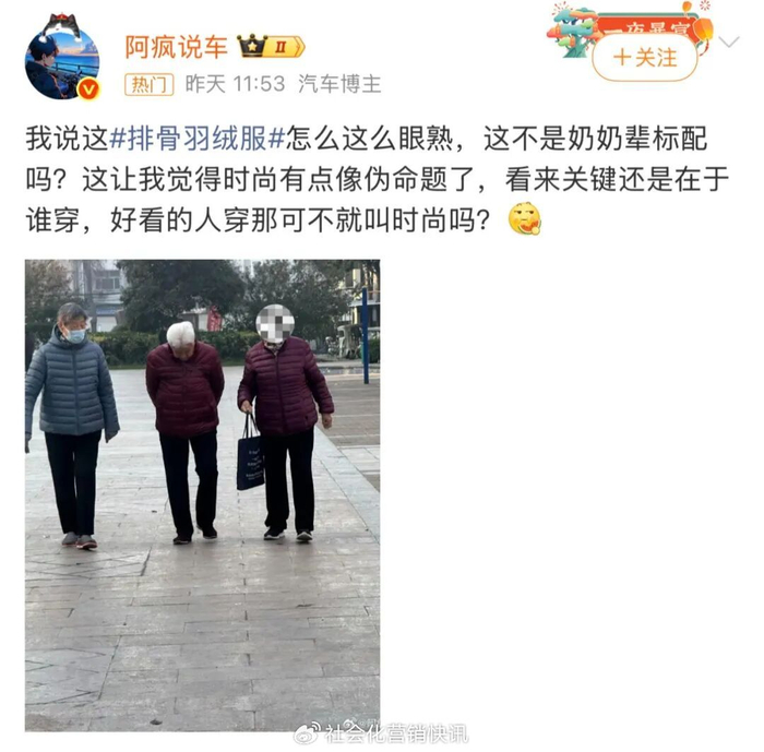 曾经的它,在时尚媒体口中,是挑选羽绒服避雷的第一款式,而如今,它竟然风评突转,成了被年轻人争相上身的“真香”单品。