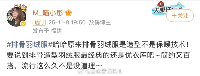 最近#排骨羽绒服# 上了热搜,跃升为今冬时尚圈顶流。