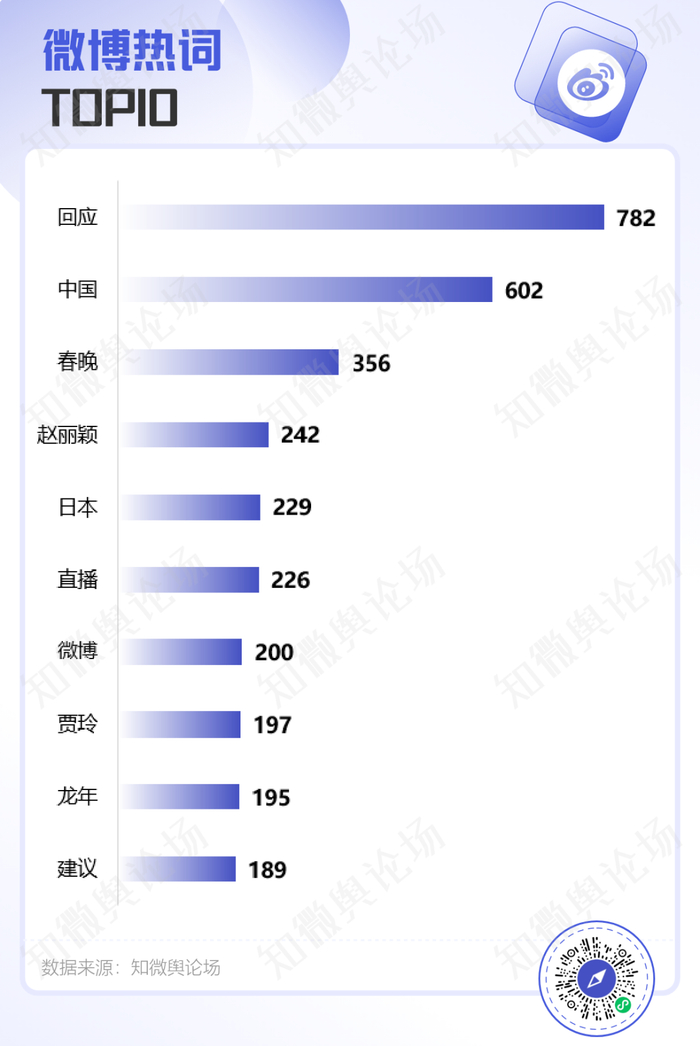 “回应”、“春晚”、“中国”等相关内容高频上榜。