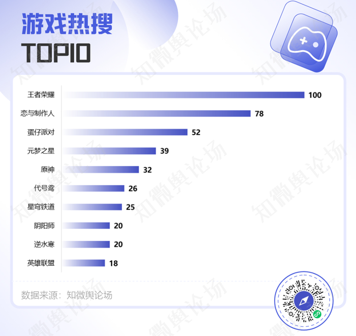 在游戏类热搜中,王者荣耀位居第一,断层领先。
