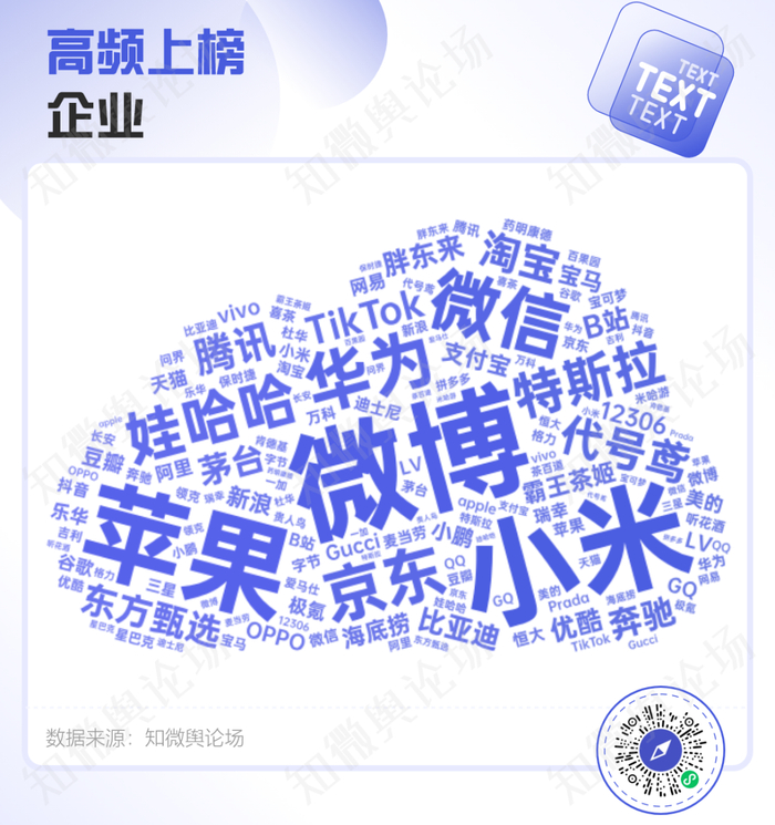 苹果因iPhone等热门产品,上榜热搜200+,位居第一;小米因汽车的热度,上榜热搜186次,位居第二。