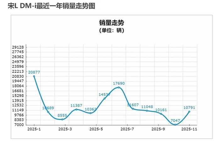比亚迪宋L DM-i凭借品牌和技术的双重优势,实现了“上市即爆款”。数据显示,自2024年7月底上市以来,宋L DM-i月均销量保持在万辆以上,其中,2025年11月销量为10791辆,而 今年1-11月累计销量为123874辆,展现了强大的品牌号召力。