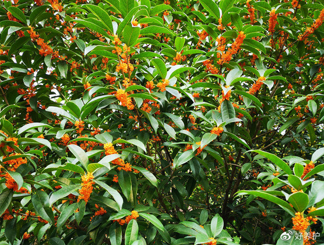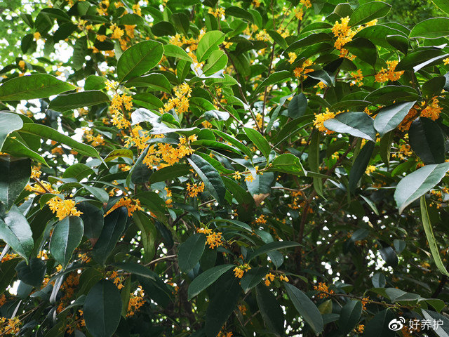 徜徉秋日,桂花树上缀满了粒粒小花朵,如同撒上了一层小星星,一串串挂满枝头。