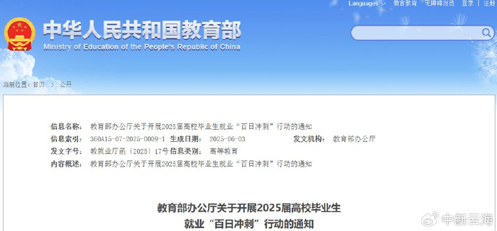 近日,教育部印发《关于开展2025届高校毕业生就业“百日冲刺”行动的通知》,自2025年5月至8月在全国范围内组织开展“百日冲刺”行动,聚焦市场化岗位拓展、政策性岗位招录、就业指导帮扶及去向登记规范管理四大任务,推动各地各高校抢抓就业关键期,加力加快就业工作进程。