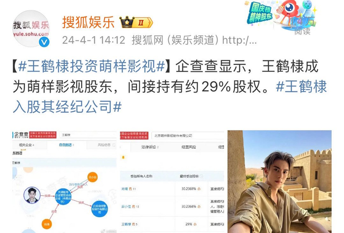 王鹤棣成为萌样影视股东,这是成老板了吗?