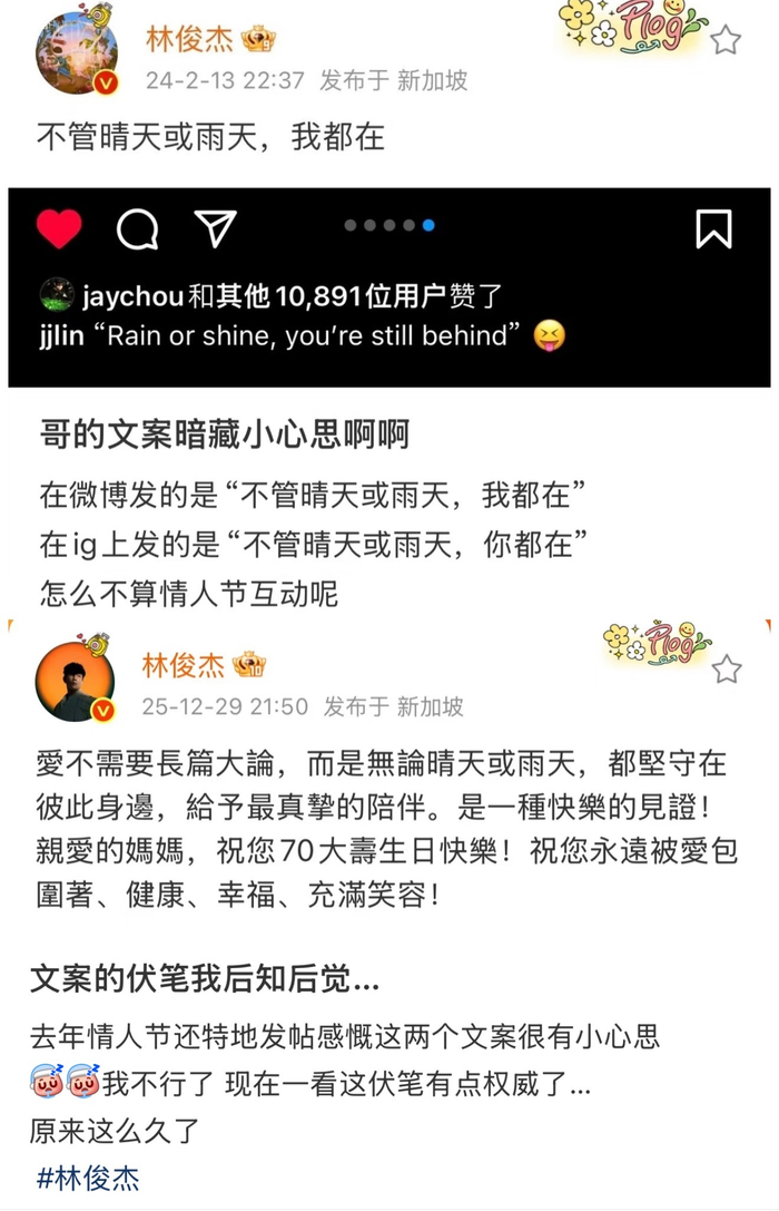 果然,明星们谈了恋爱都暗戳戳的,巴不得全世界都扒出来他们的蛛丝马迹。1,林俊杰文案还有新伏笔,暗藏小心思;2,今年情人节看似告白粉丝,实际上发了77秀恩爱。
