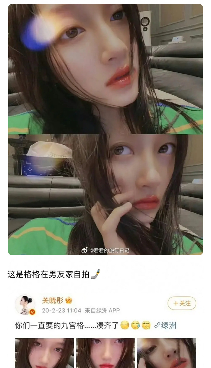 鹿晗直播截图、司晓迪、关晓彤发的图的背景高度重合,当初关晓彤发这个图的时候,都说她在挑衅粉丝,还记得那个经典的词条:“小女孩最知道怎么气小女孩”。