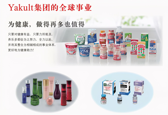 事实上,在全球范围内,养乐多的产品线已经从乳酸菌饮料拓展至其他营养食品,甚至延伸至使用乳酸菌研发的化妆品,以及从酵素产品开始延伸至医药品、医疗器械、试剂等领域,还开发出多款抗肿瘤药品。