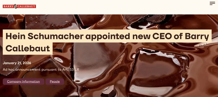 小食代留意到,收入规模达到千亿的跨国食品巨头百乐嘉利宝(Barry Callebaut)今天在一份公告中宣布,任命前联合利华首席执行官司马翰为该公司新帅,他将于2026年1月26日正式“上岗”。