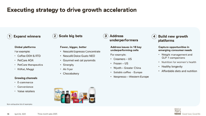 此外,他还表示,团队的协调和专注对业绩至关重要。继去年对组织架构做出迅速调整后,雀巢进一步简化了架构,以支持高效执行,这包括统一欧洲区架构和增强研发能力。