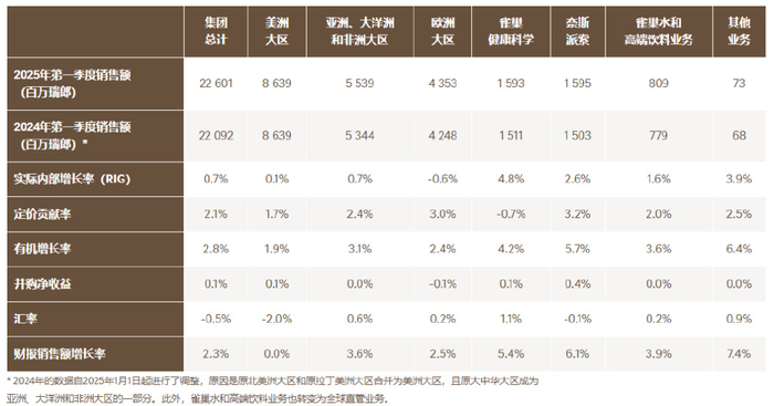 该集团在财报中指出,一季度由于采取了定价措施来应对咖啡和可可相关品类投入成本的通胀,定价贡献率提升至2.1%。实际内部增长为0.7%则反映出消费者需求疲软,以及消费者和客户在适应价格上涨过程中产生的短期调整影响。