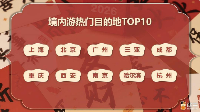 1月3日,记者从途牛发布的《2026元旦出游消费盘点》获悉,80、90后家庭客群主导元旦假期旅游消费,出游人次占比接近70%;主题乐园游、传统文化游、冰雪旅游、温泉游、避寒游、新年祈福游等玩法组合成新年文旅消费多元热潮。境内游热门目的地中,上海、北京、广州、三亚、成都、重庆、西安、南京、哈尔滨、杭州等出游热度排名靠前。