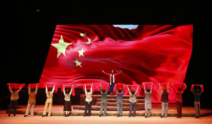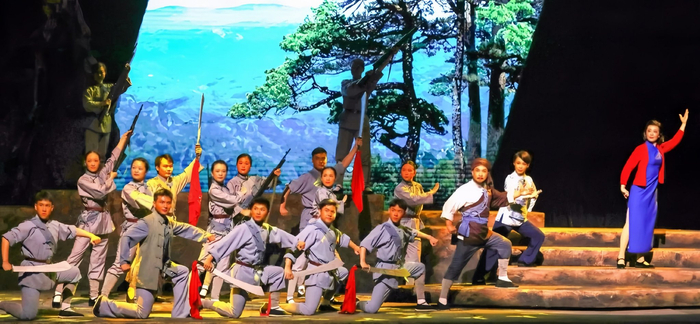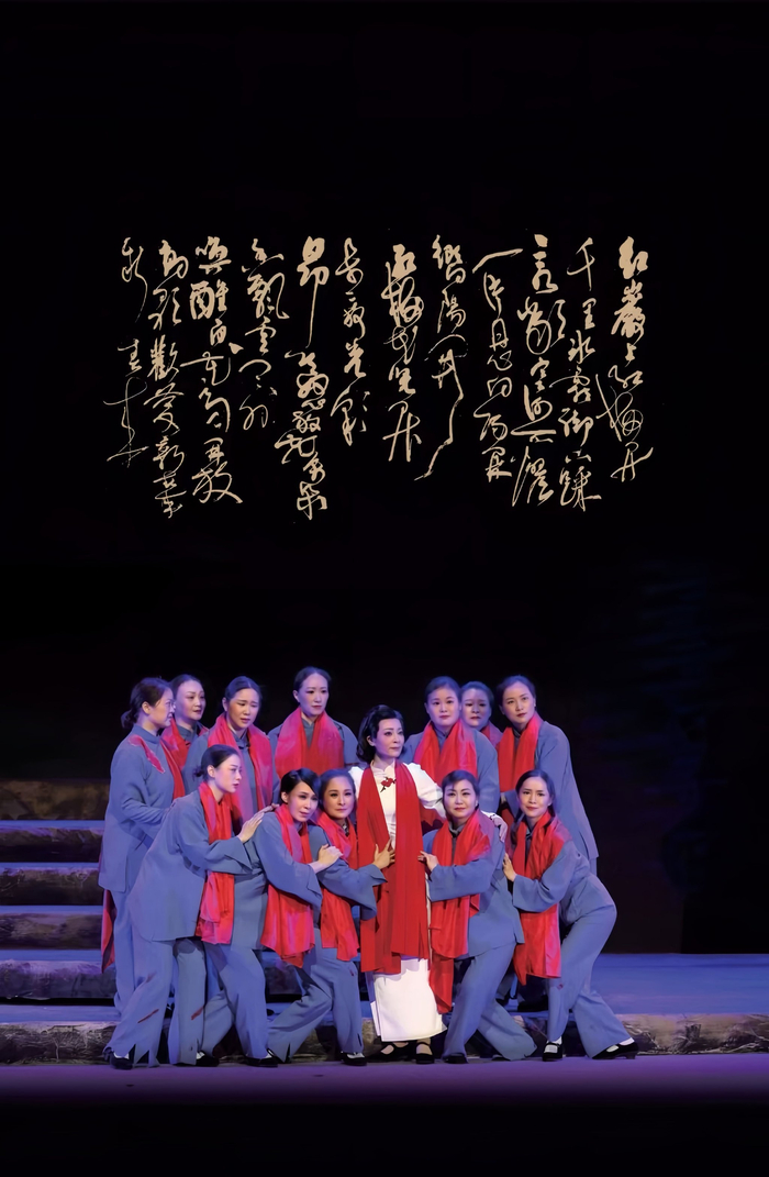 作为整个剧情的主线,“红梅”在舞台上多次出现。一级舞美设计师姚骏介绍,“红梅”是江姐与彭松涛爱情的信物,也是共产党人高洁品格的象征,整场演出由红梅启幕,红梅亦陪伴着江姐走向刑场,首尾呼应,贯穿始终,增强了戏剧的完整性和意向性。