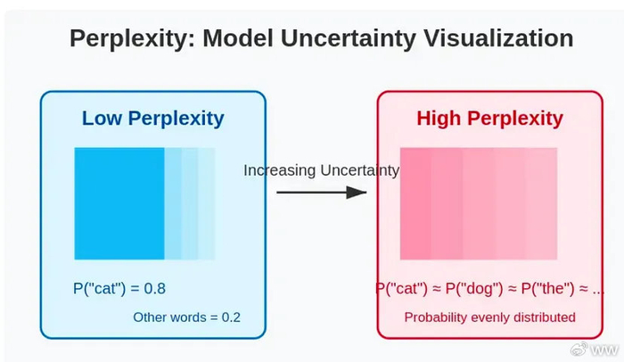 在专业术语上,跟困惑度相关的叫文本熵值,就是基于信息论的随机度量。一个文本的熵可以通过字词分布来计算。所以,AI生成的文本可能在某些统计特征上熵较低,过于均匀或模式化,而人类文本熵值更高或者分布不同。