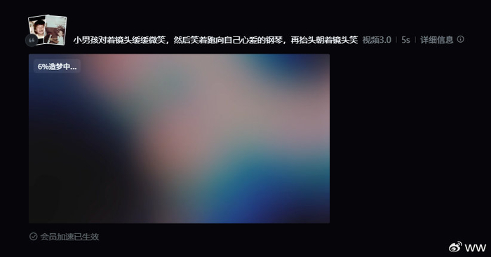 所以,我们可以输入:“小男孩对着镜头缓缓微笑,然后笑着跑向自己心爱的钢琴,再抬头朝着镜头笑”。