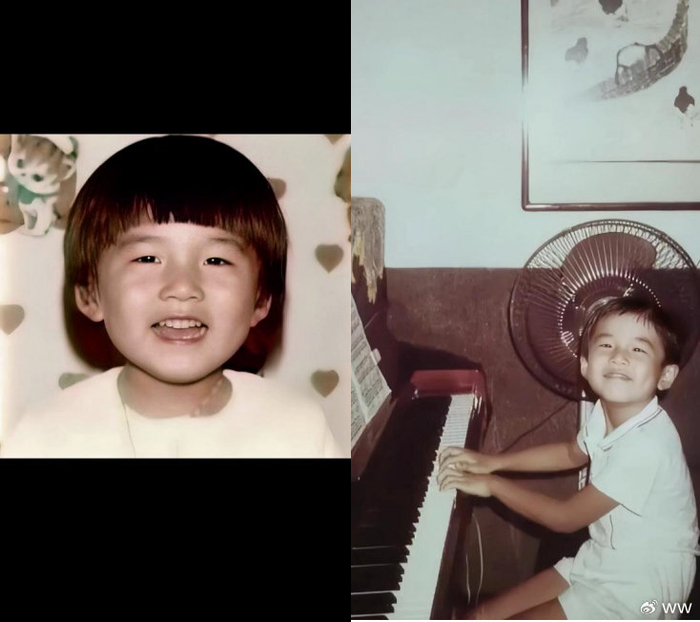 以周杰伦发布视频的第一帧为例,先找好这两张他小时候的照片,然后裁剪成相同比例的大小,我们这里可以选择适应于抖音竖屏播放的9:16。