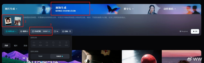 选择视频生成功能,将周杰伦的两张照片按照顺序作为首帧和尾帧插入。