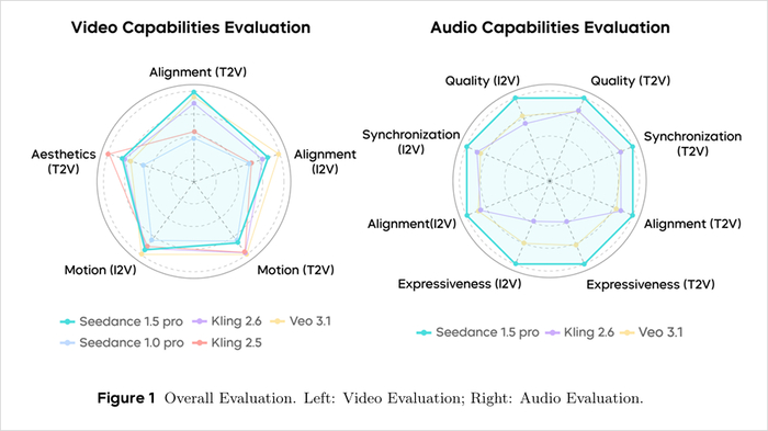 左边是视频生成能力,右边是语音生成能力。绿色的就是Seedance新模型,在语音生成这一块可以说是遥遥领先。。。