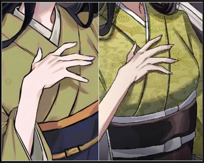 说实话,这差别有点太大了,人体结构和光影明显不对,而且腹肌和裤子褶皱的画法也和右图两模两样。