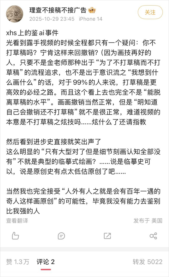 那时候很多人都觉得,绘圈鉴AI已经鉴魔障了,看什么都是AI。